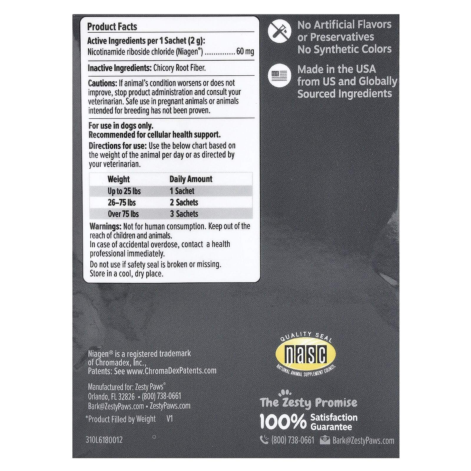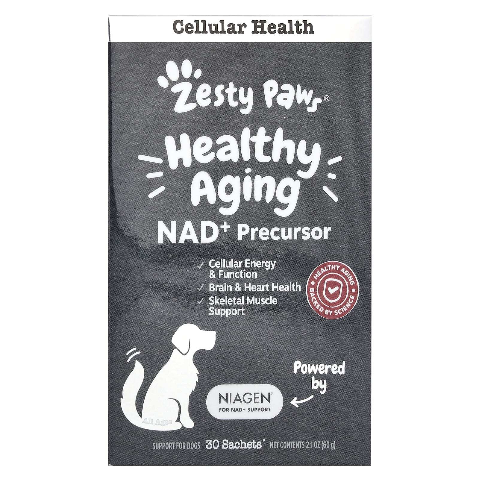 Niagen® поддерживает физическое, когнитивное здоровье и метаболизм; а также выработку клеточной энергии и самовосстановление; и это может даже помочь вашей собаке справиться со стрессом, вызванным окружающей средой.