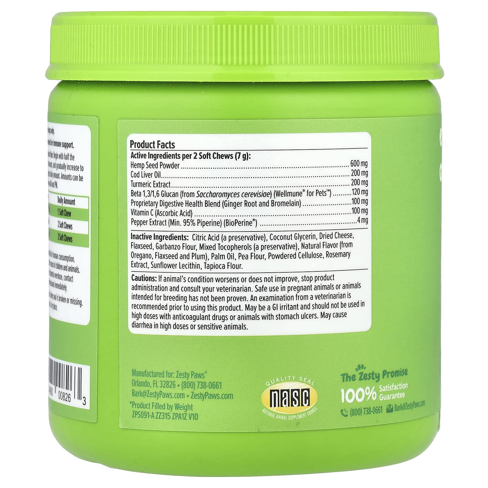 Zesty Paws, Hemp Elements™, добавка от аллергии и иммунитета, для собак всех возрастов, со вкусом сыра, 90 мягких жевательных таблеток, 315 г (11,1 унции)