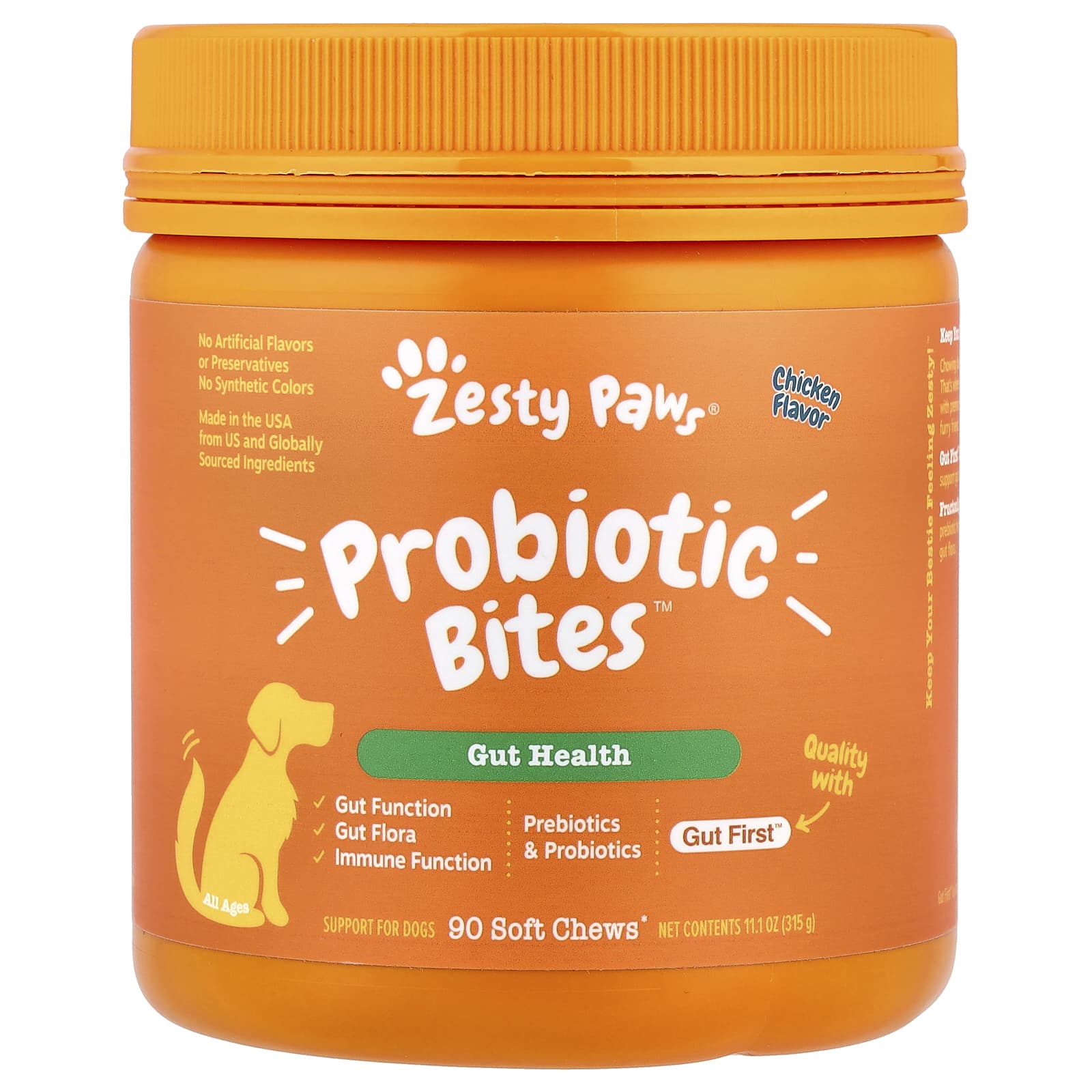 Zesty Paws, Probiotic Bites™, для собак всех возрастов, со вкусом курицы, 90 жевательных таблеток, 315 г (11,1 унции)
