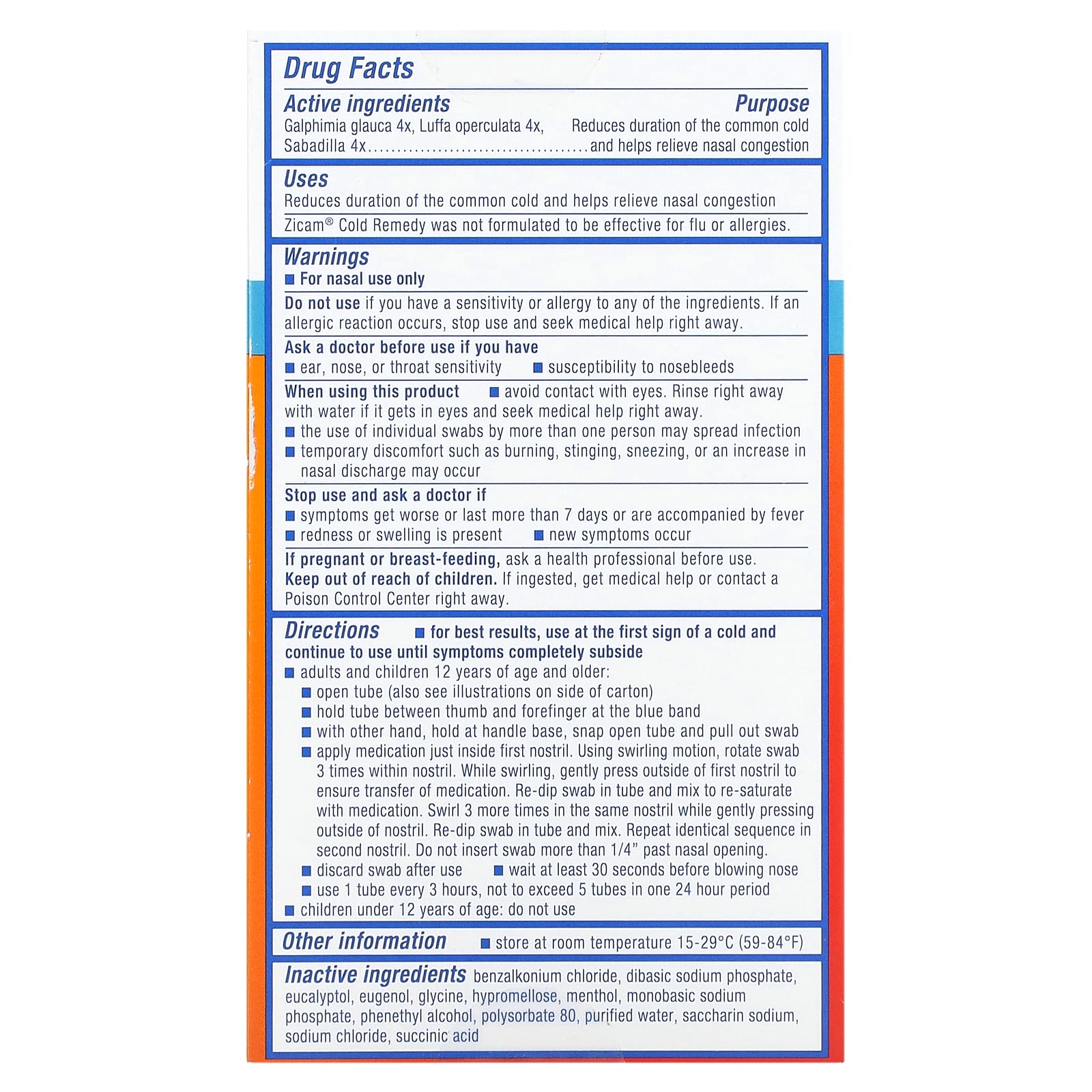 Назначение. Сокращает продолжительность простуды и помогает уменьшить заложенность носа. Средство от холода Zicam® не было эффективным при гриппе или аллергии.