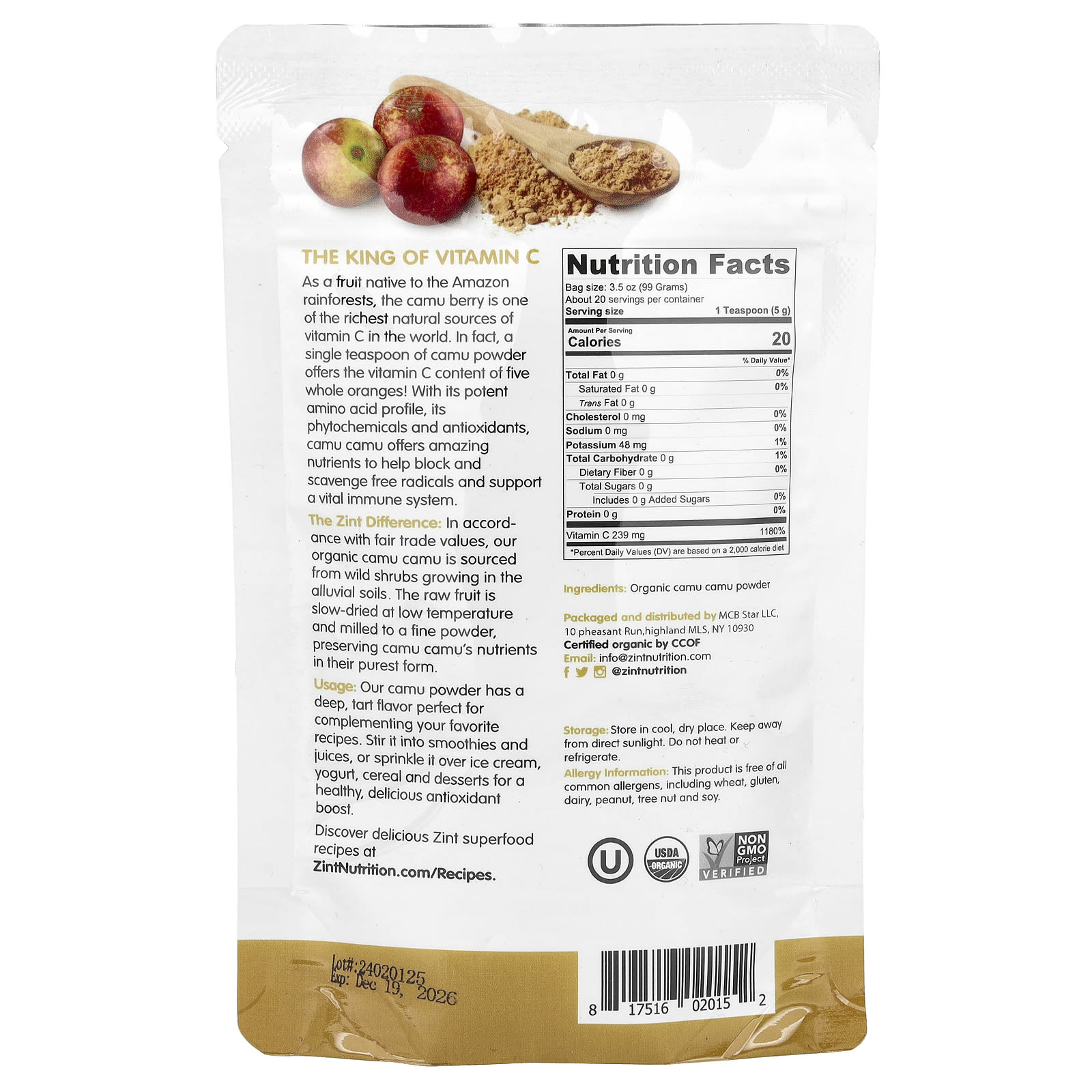 Особенности Zint. В соответствии со стандартами справедливой торговли наши органические ягоды каму-каму получают из диких кустарников, произрастающих на аллювиальных почвах вдоль рек и ручьев у перуанской части Амазонки. Необработанные плоды медленно сушат при низкой температуре и измельчают до мелкого порошка, сохраняя питательные вещества каму-каму в их чистом виде.