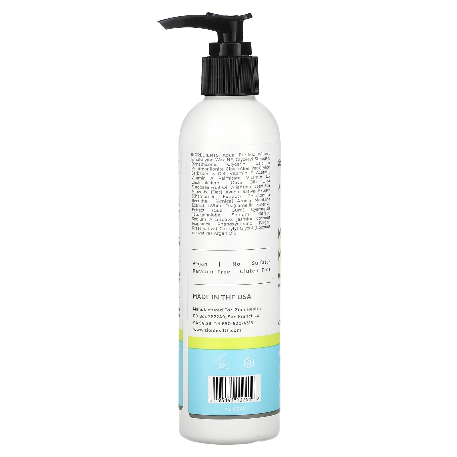Очищенная вода, эмульгирующий воск NF, глицерил стеарат, диметикон, глицерин, монтмориллонитовая глина с кальцием, (алоэ вера) гель алоэ барбаденсис, ацетат витамина E, пальмитат витамина A, витамин D3, холекальциферол, (оливковое масло) масло из плодов Olea europaea, аллантоин, минералы мертвого моря, экстракт овса (Avena sativa) (экстракт ромашки) Chamomilla recutita, экстракт арники (Arnica montana), экстракт камелии китайской (белый чай), (гуаровая камедь) Cyamopsis tetragonolaba, цитрат натрия, аскорбат натрия, аромат жасмина и кокоса, феноксиэтанол (веганский консервант), каприлил гликоль (производное кокоса), аргановое масло.