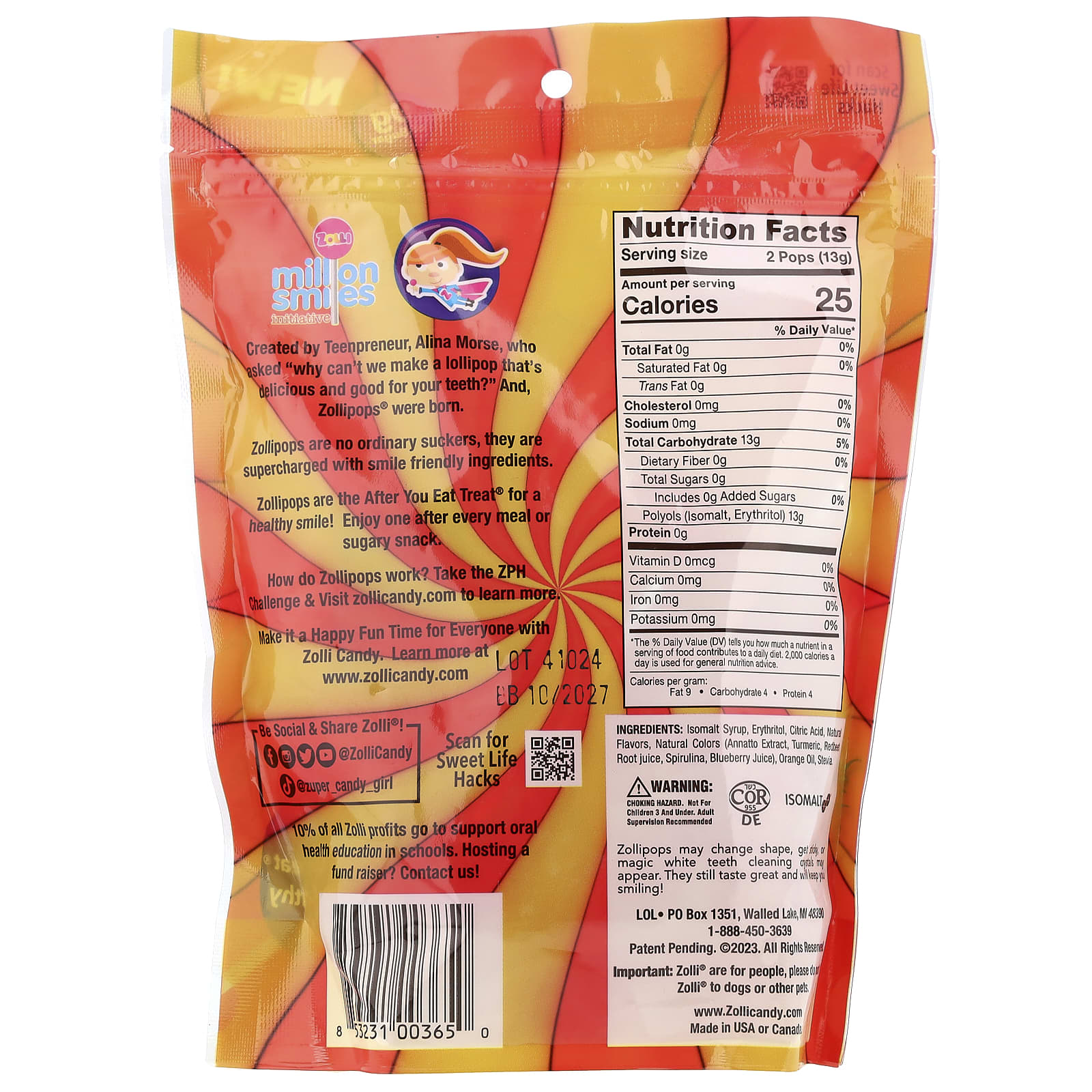 Создано юным предпринимателем Алиной Морс, которая задалась вопросом: «Почему мы не можем сделать вкусную конфету, полезную для зубов?» Так появились леденцы Zollipops®.