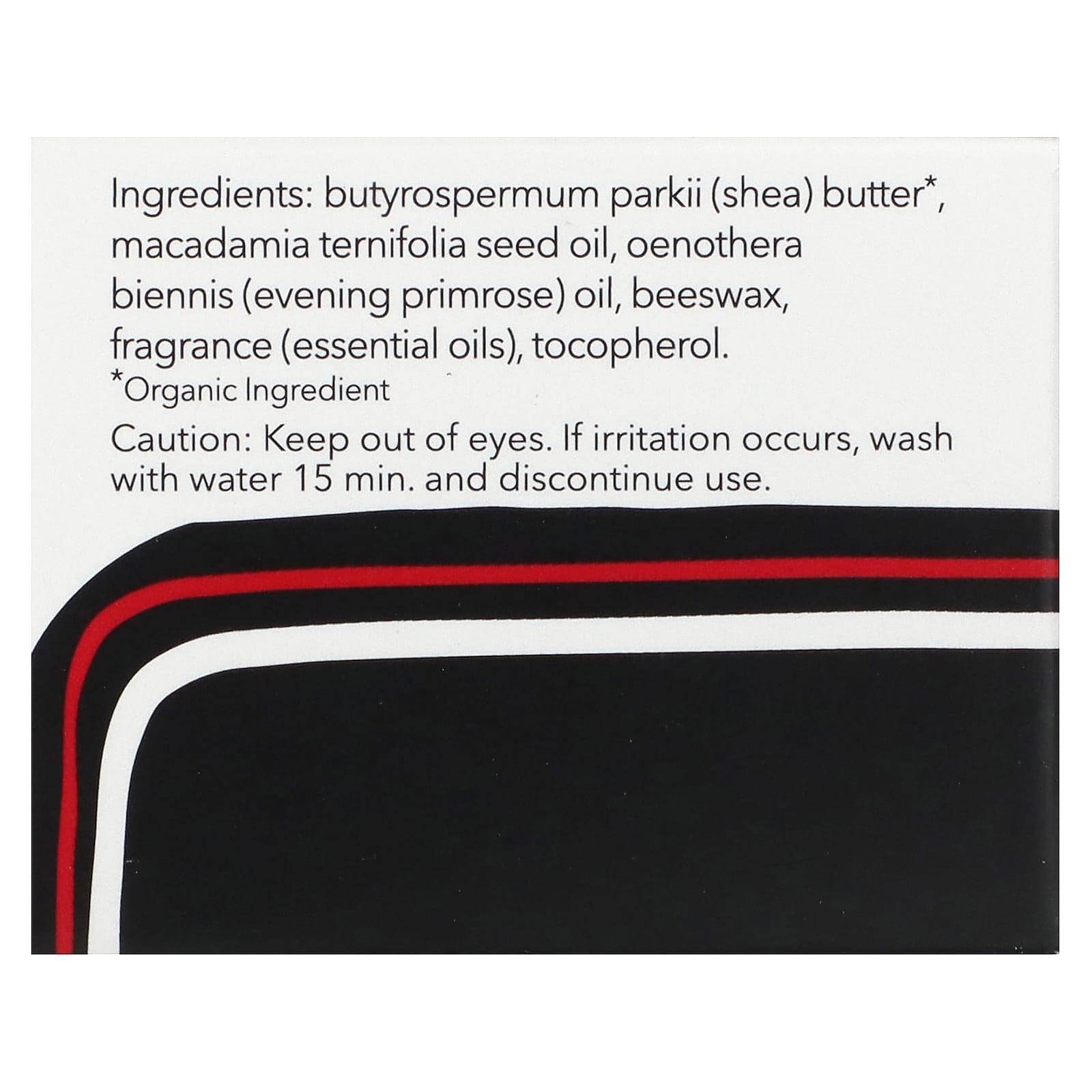 Масло ши (butyrospermum parkii)*, масло макадамии (Macadamia ternifolia), масло примулы вечерней (Oenothera biennis), пчелиный воск, отдушка (эфирные масла), токоферол.